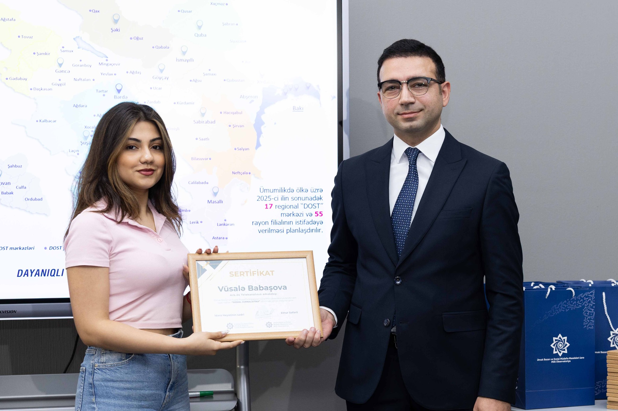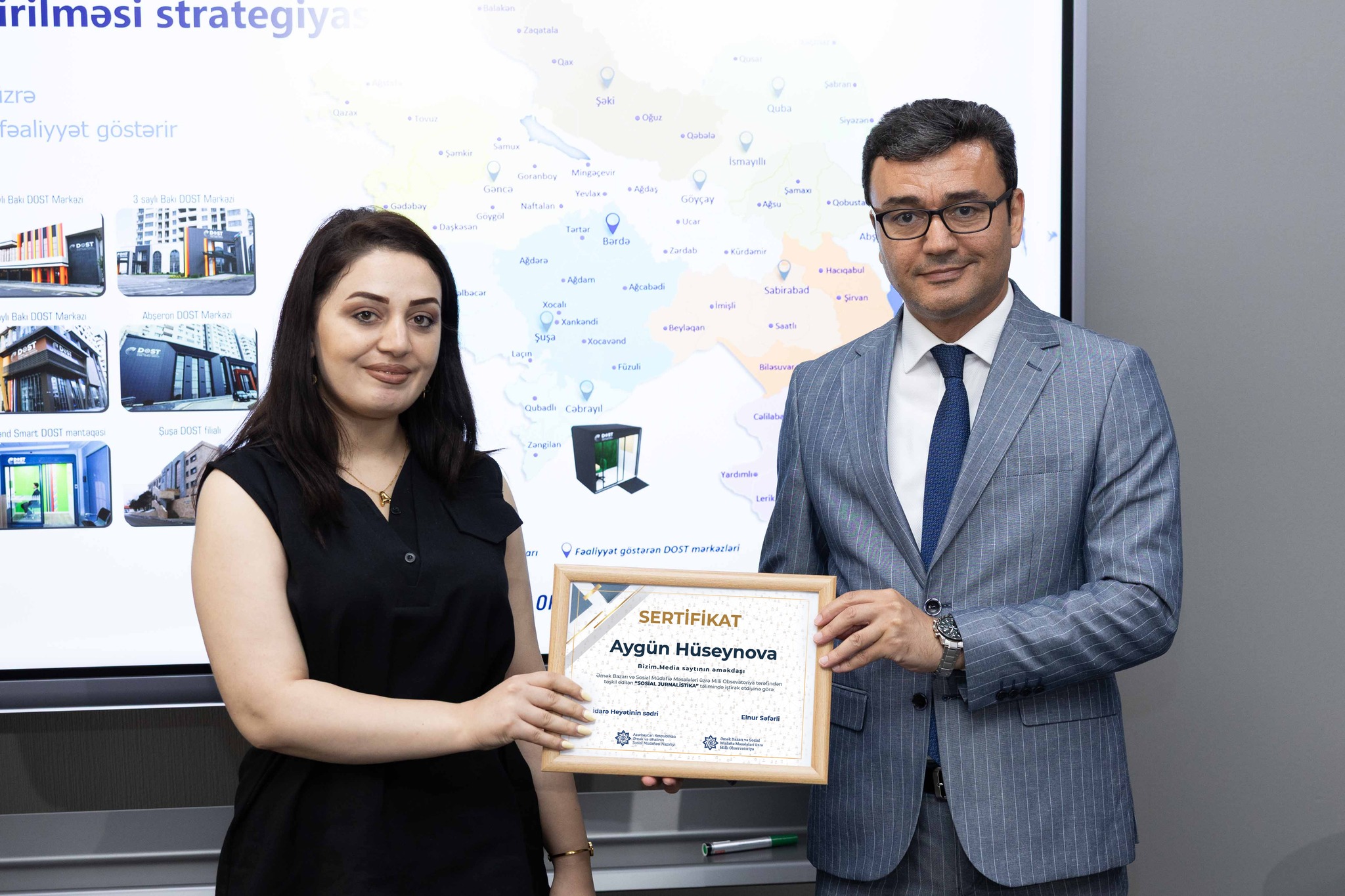 Təlim iştirakçıları həmçinin DOST mərkəzlərinin fəaliyyəti ilə bağlı praktiki nümunələrlə tanış olublar. Daha sonra jurnalistlərin sualları cavablandırılıb və sosial sahədə informasiya mübadiləsinin gücləndirilməsi yolları müzakirə edilib.