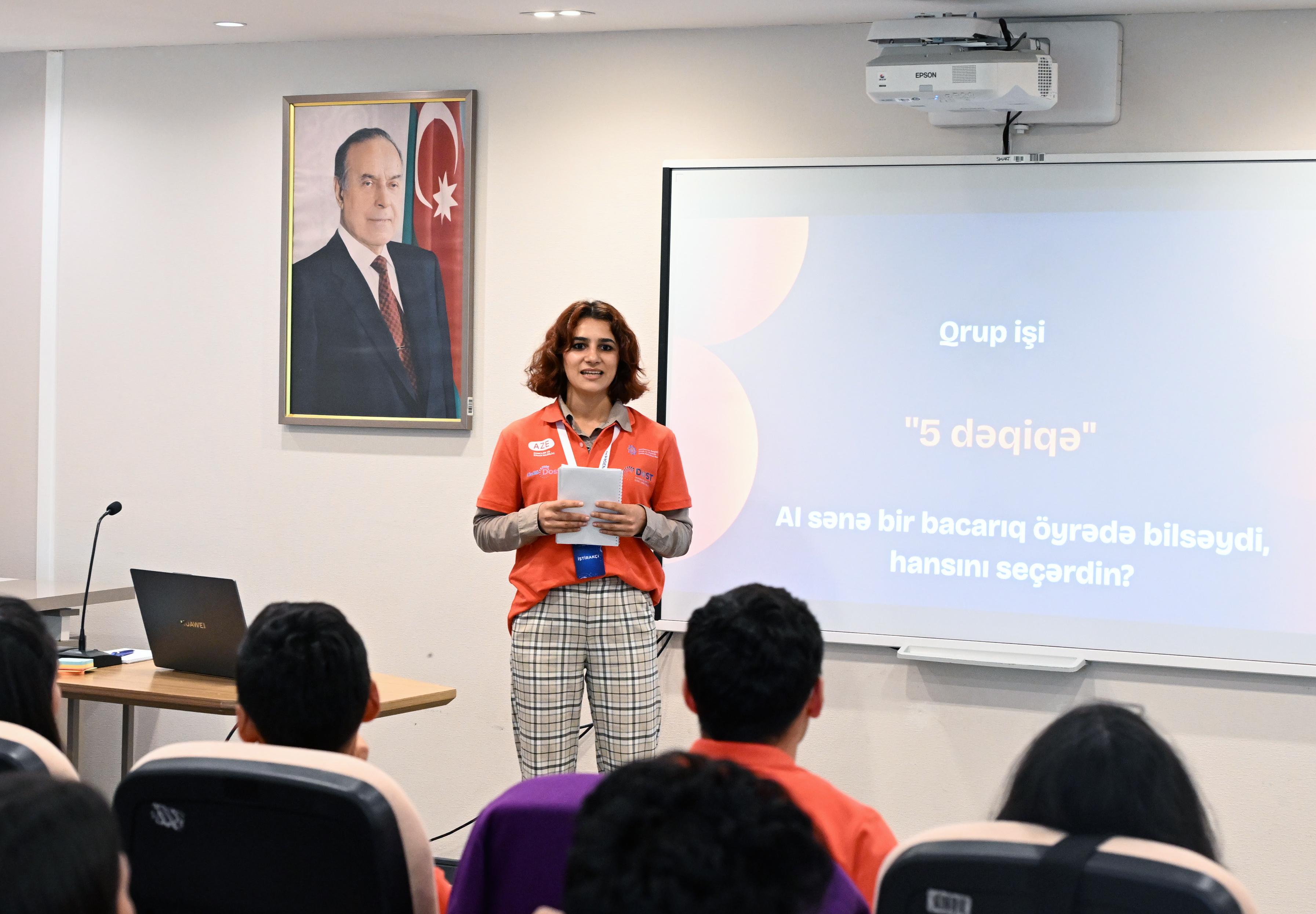 Quba Olimpiya İdman Kompleksində keçirilən düşərgənin 2-ci günündə “AI Lab Trenders”in AI kreativ direktoru Ümid Salay və Rəqəmsal marketinq üzrə mütəxəssis Abdulla Abdullayev tərəfindən Könüllü DOSTlarımız üçün “PromtPlay” adlı vörkşop təşkil edilib. Daha sonra isə Azərbaycanlı Tələbələr və Məzunlar Platformasının proqram meneceri Gülüstan Kərimli tərəfindən “Təqdimat bacarıqları” təlimi keçirilib. Sonda iştirakçılar “Süni intellekt gəncləri informasiyaya yaxınlaşdırır” mövzusundakı debatda maraqlı müzakirələr aparıblar.
