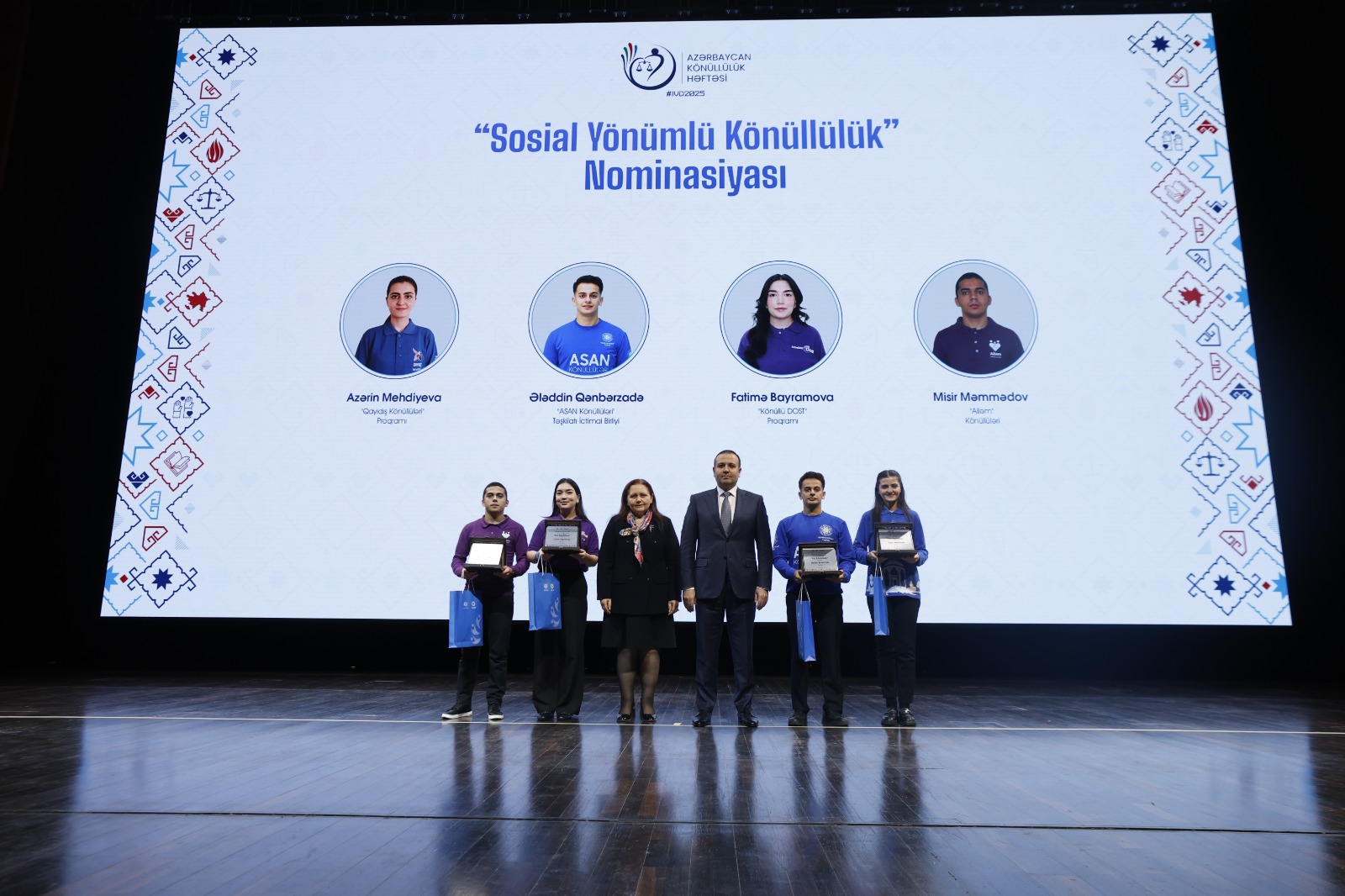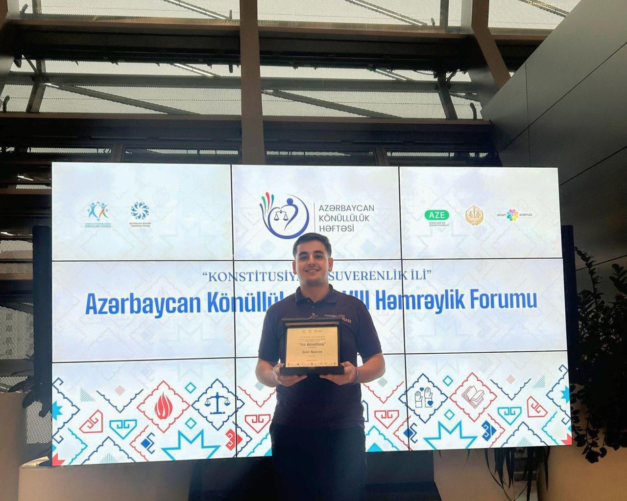 Среди победителей оказались и члены программы "Доброволец DOST": Кадир Насиров получил премию "Доброволец года" в номинации "Добровольчество в государственных учреждениях", а Фатимэ Байрамова — в номинации "Добровольчество в социальной сфере".