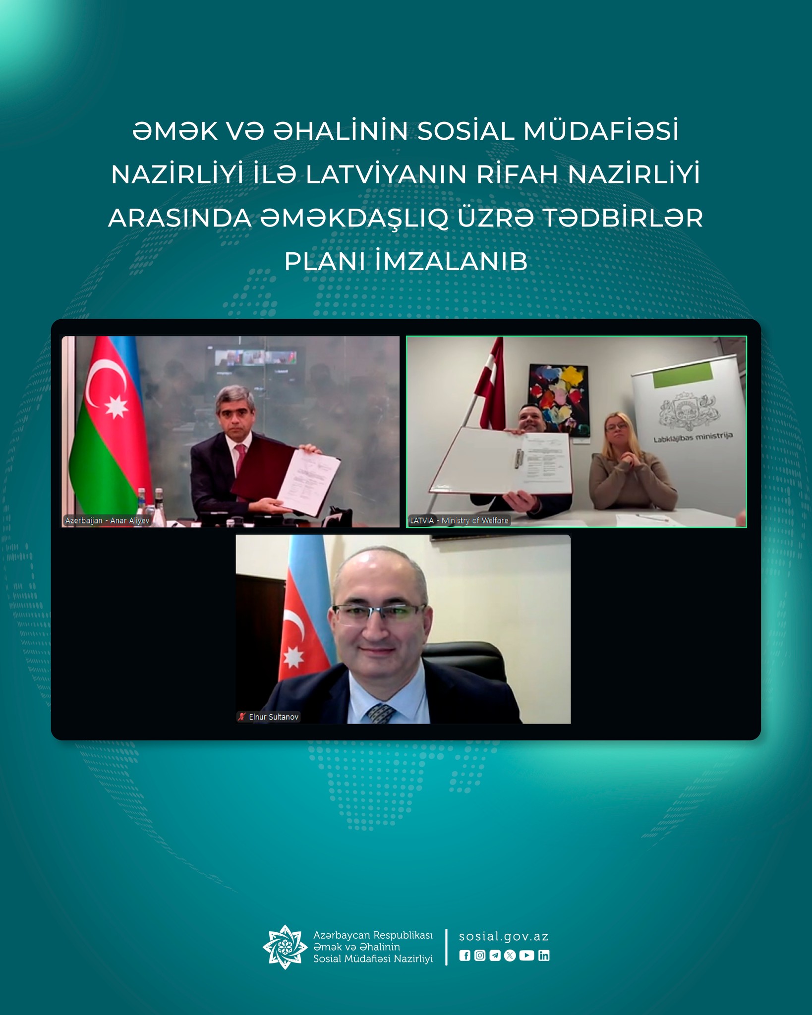 Затем Анар Алиев и Рейнис Узулниекс подписали План мероприятий на 2026–2027 годы по реализации Меморандума о взаимопонимании между Министерством труда и социальной защиты населения Азербайджанской Республики и Министерством благосостояния Латвийской Республики в сферах труда, занятости и социальной защиты населения.