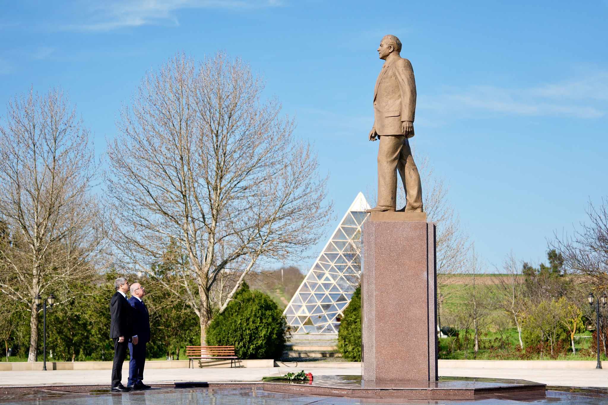 Перед приёмом Анар Алиев и глава Исполнительной власти Гобустанского района Адиль Мамедов посетили памятник Общенациональному лидеру Гейдару Алиеву.